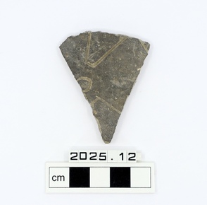A small body sherd of a grey ware, with incised geometric s…