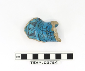 Neck of a blue faience vessel decorated with geometric patt…
