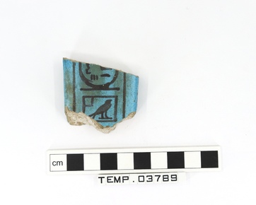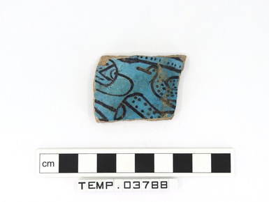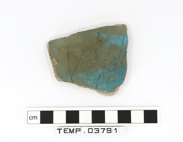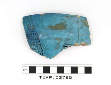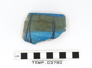 Body sherd from a blue faience vessel decorated on the inte…