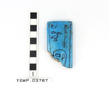 Fragment of a blue faience rectangle with external groove. …