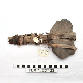 Stone hammer with plant fibre handle. Large stone head with…