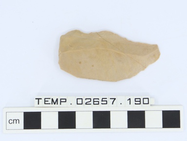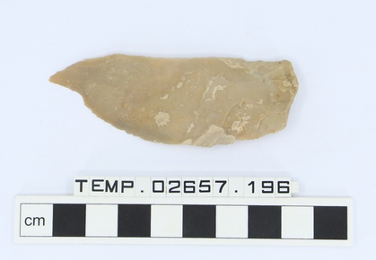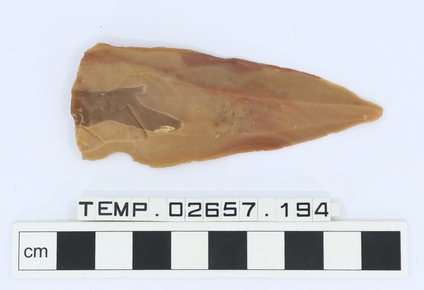 Small stone projectile, slightly hollowed base.