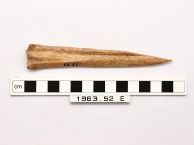 Bone awl, from metatarsal of deer.