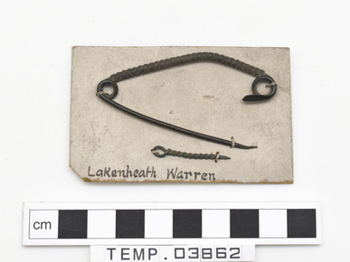 Copper alloy bow brooch. Two-coil spring mechanism and comp…