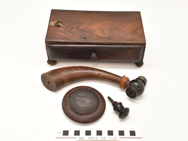 Darning block consisting of 1) rectangular wooden box with …