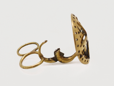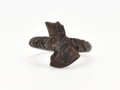 Finger ring made from copper alloy. The band is formed of l…