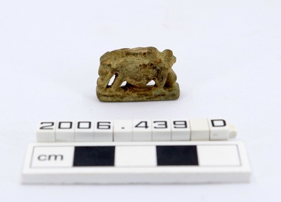 A small animal figurine amulet, possibly a lion. Animal fig…