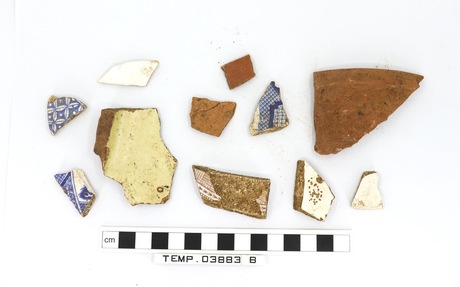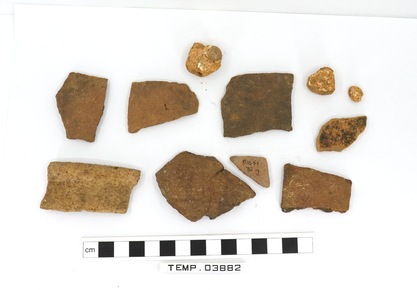 8 pot sherds. and three pieces of clunch. Six body sherds, …