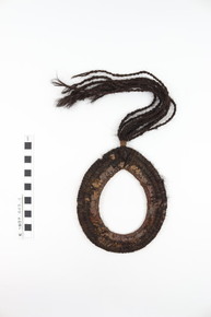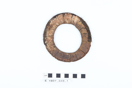 Arm ornament. Ring of human hair and bark bound tightly. A …