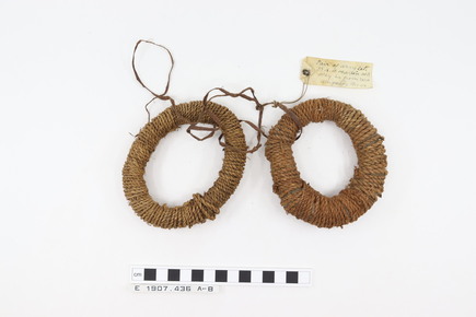 Arm ornament. Finely plaited strips of plant fibre, forming…