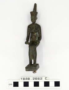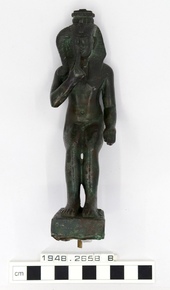 A bronze figure of Harpocrates with very tall plumes. Left …