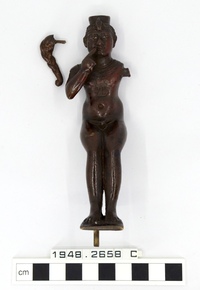 A bronze figure of Harpocrates with side lock of youth that…