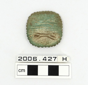 A large, pale green faience amulet or bead in the form of a…