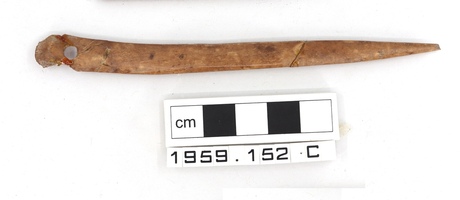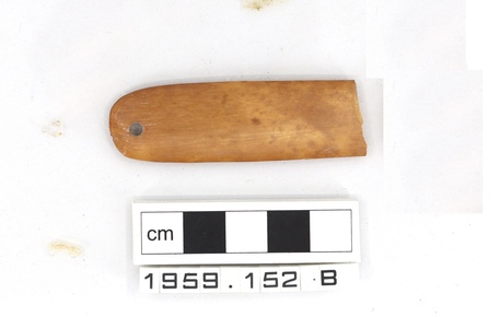 Bone tool. Fragment of spatula with drilled hole, Type IV.
