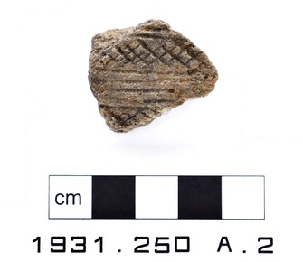 One body sherd from a vessel made of dark buff-coloured cla…