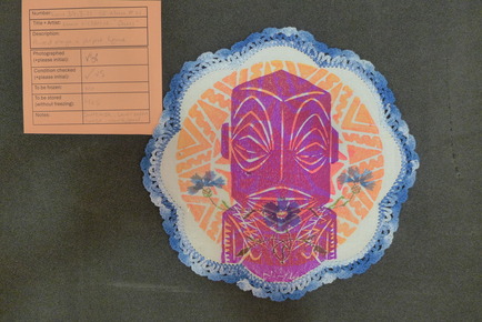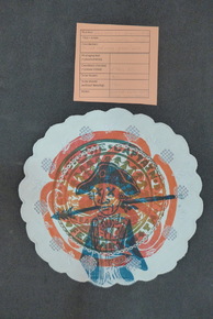 Doily. Round-shape, of cotton (Gossypium hirsutum) and acry…