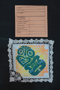 Doily. Square-shape, of cotton (Gossypium hirsutum) and acr…