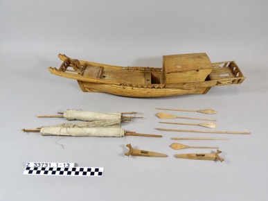 A Borak. Model boat with two masts and rudder. Carries squa…
