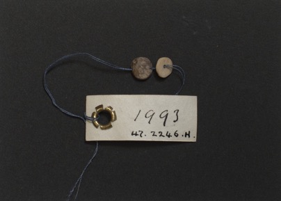 Two tabular shell beads