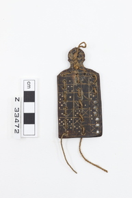 Divining slab of buffalo horn pierced with holes.