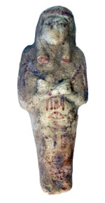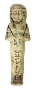 Shabti of ?Mery-Re. Pottery with white wash, blue/black hea…