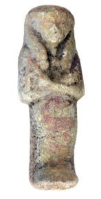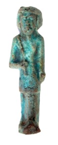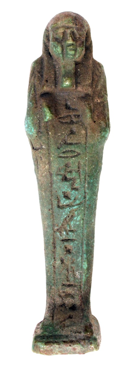 Green faience shabti, now faded to brown. Impressed inscrip…