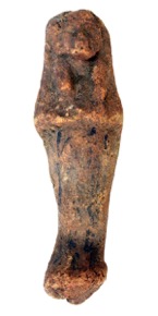 Pottery shabti. Traces of polychrome decoration, and a blac…