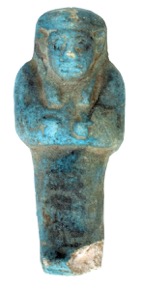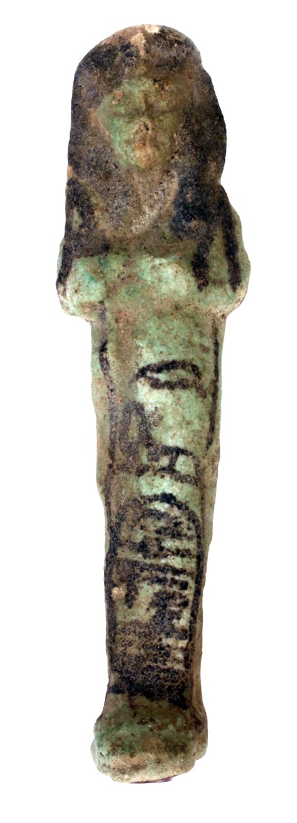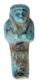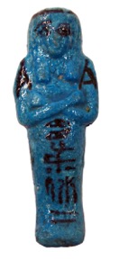 Blue faience shabti for Mut, with details added in black, b…