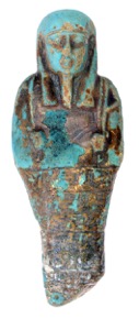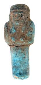 Pale blue faience shabti coated in layer of varnish (modern…