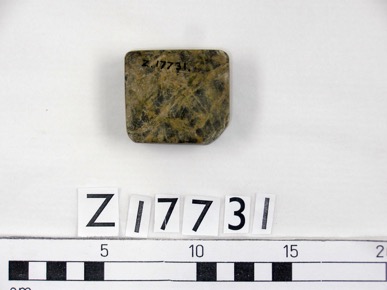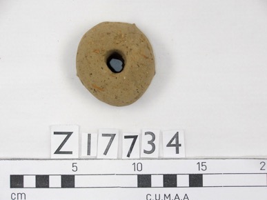 Stone, or basalt, weight. Flat base with a domed top.