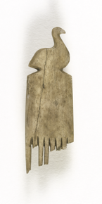 A bone comb with a bird crest, teeth broken.