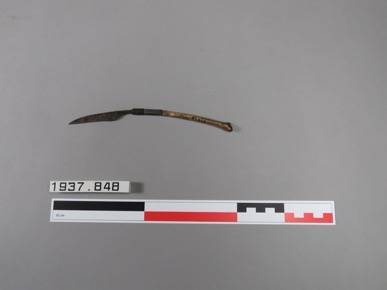 Knife with a pointed blade and a bone handle.