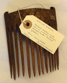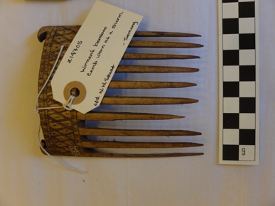 Woman's bamboo comb, with an incised decoration.