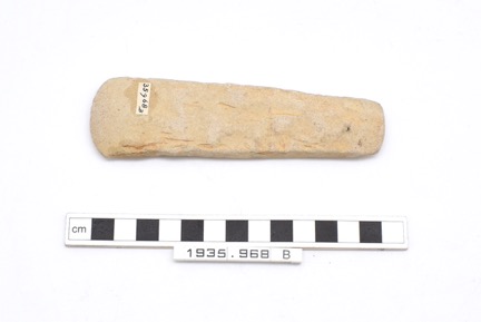 Batu Lintar. Axe made of a yellowish buff stone with a chip…