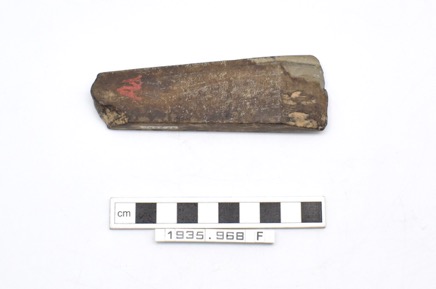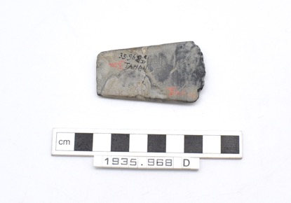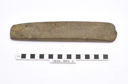 Batu Lintar. Axe made of a ground grey stone, with a flat b…