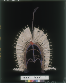 Headdress - Card 1: 'DARI. Feather head-dress worn in dance…