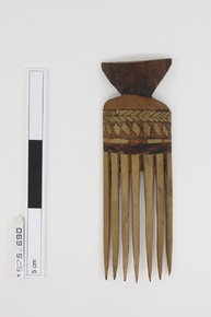 Ear-weight. Carved and polished wood (probably Manilkara k…