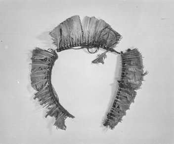 Headdress - Card 1: 'Framework of a DARI. War head-dress.'<…