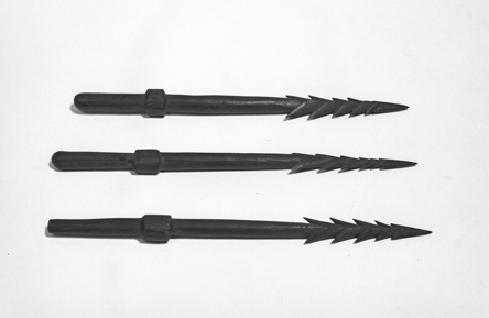 Kwoioro. Harpoon points cut from hard wood in one piece. Ba…