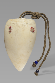 Bullroarer. Small pear shaped bullroarer of brown wood atta…