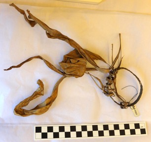 Armguard in twilled pattern of thin bamboo strip.