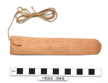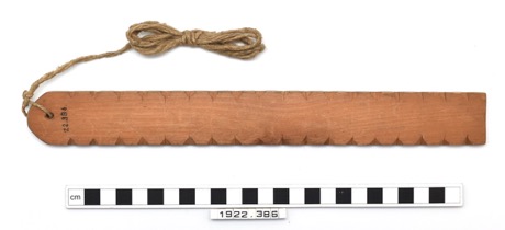 Bullroarer, consisting of a rectangular wooden board with t…