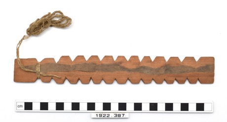 Bullroarer, consisting of a rectangular wooden board with l…