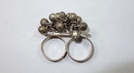 Double finger ring with ball ornaments attached at top, inc…