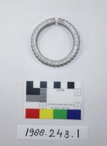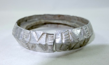 One of four aluminium bangles with incised tooth design.
