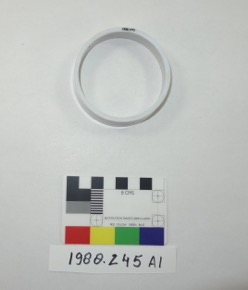 One of ten white plastic bangles.