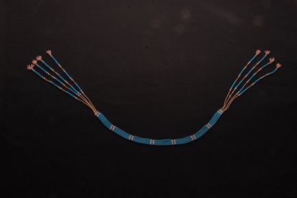 Necklace formed of four strands of plaited string on to whi…
