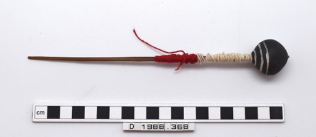 A piece of wood, cylindrical in shape with one rounded end …