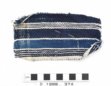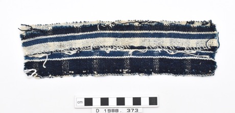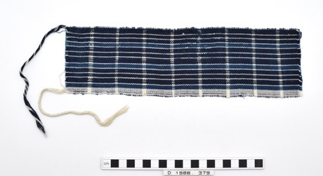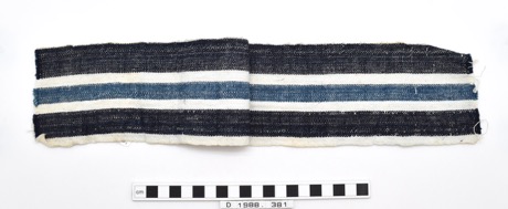 Long piece of woven cotton with blue and white stripe with …