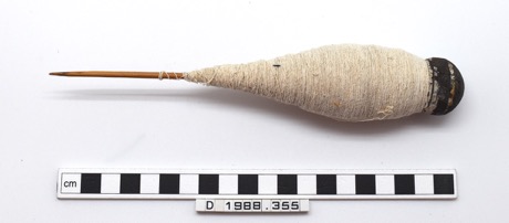 Whirl for spinning cotton. It consists of a thin wooden sti…